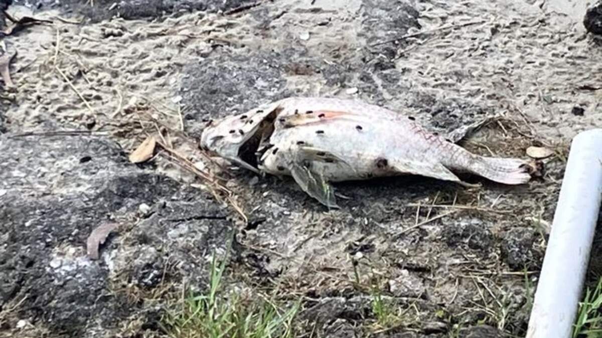 City leaders say water tests show the presence of the algae in a body of water where more than 1500 dead fish have been removed.